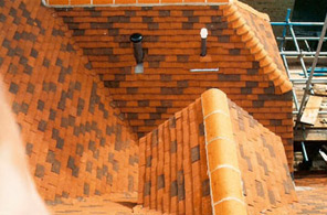 Moreover, our roofers are renowned for their expertise in the ancient art of Kent peg tiling. The Kent peg is a very specialised form of roofing it's use being much preferred on Listed Buildings in Kent. Every tile is hand-made and is a different shape and/or texture and each bonnet and ridge tile needs to be carefully placed so as to ensure the correct finish..